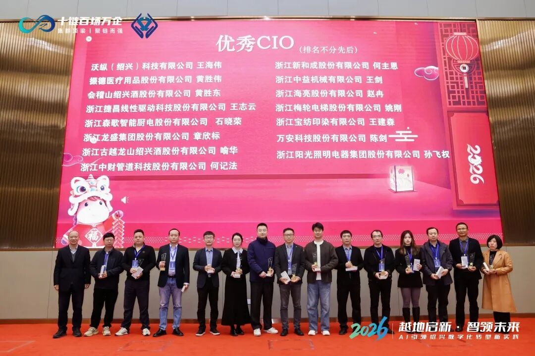 近日,浙江省“十链百场万企”系列活动之[越地启新·智领未来] AI 引领绍兴数字化转型新实践活动顺利开展。本次活动汇聚政企学研多方力量,聚焦抢抓 AI 发展风口,复盘产业数字化建设成效,共探 AI 赋能产业升级新路径,助力绍兴打造长三角数字化转型示范城市,佳沃集团应邀参会,并在本次“年度优秀 CIO ”评选中斩获奖项。