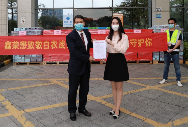 3月18日,鑫荣懋紧急调配保障物资及冷藏货车,将3000份水果礼盒送至抗疫最前线的深圳市第三人民医院,双方在多次的同心抗疫中结下深厚的友情。