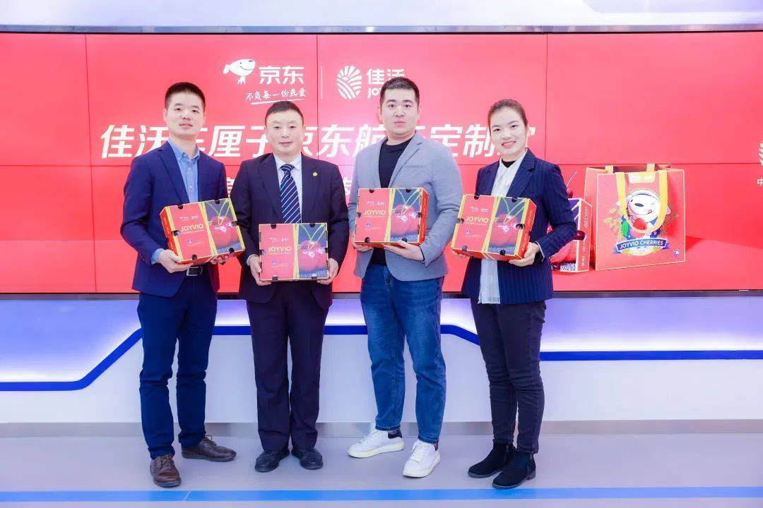 签约仪式现场,鑫荣懋联合京东生鲜代表——京东生鲜采销部销售组总经理王文博,共同重磅推出佳沃车厘子中国航天定制款京东联名礼盒。